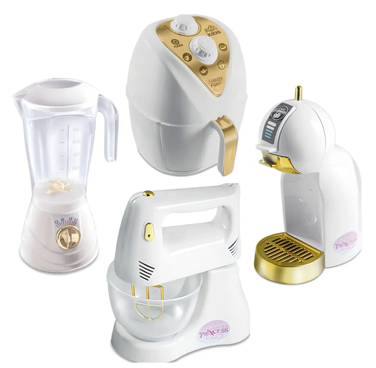 Este conjunto inclui uma cafeteira, um liquidificador, uma Airfryer e uma batedeira, todos projetados para proporcionar uma experiência de jogo realista. As crianças vão adorar preparar suas refeições imaginárias com estes aparelhos de cozinha de brinquedo.