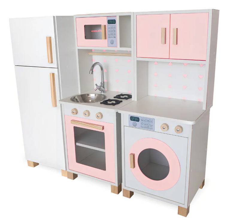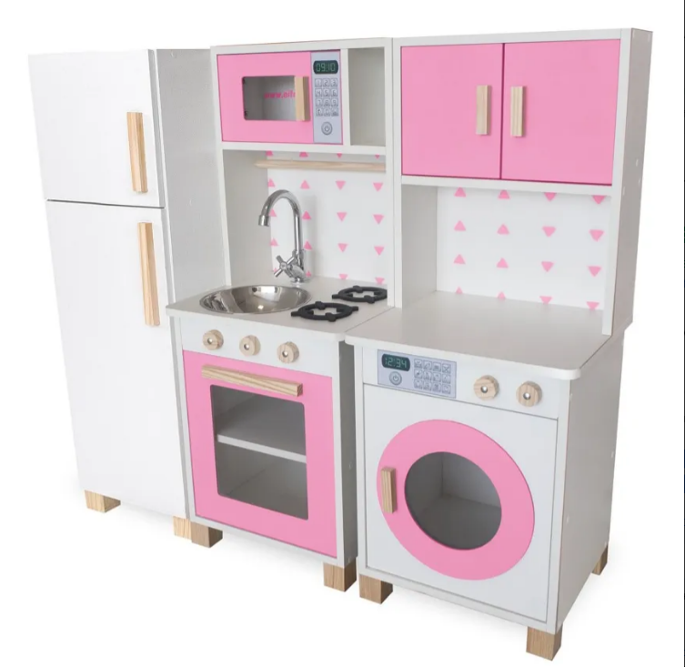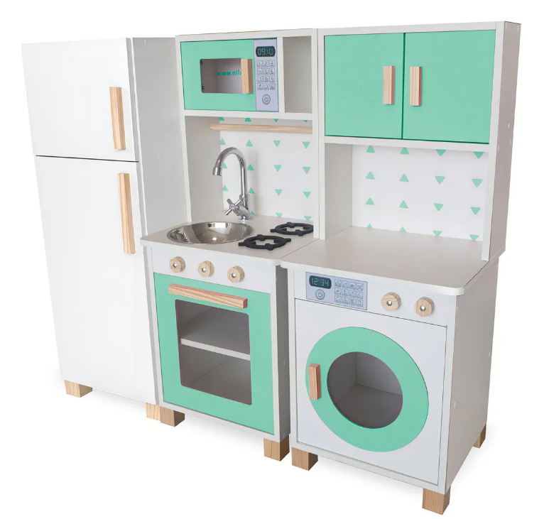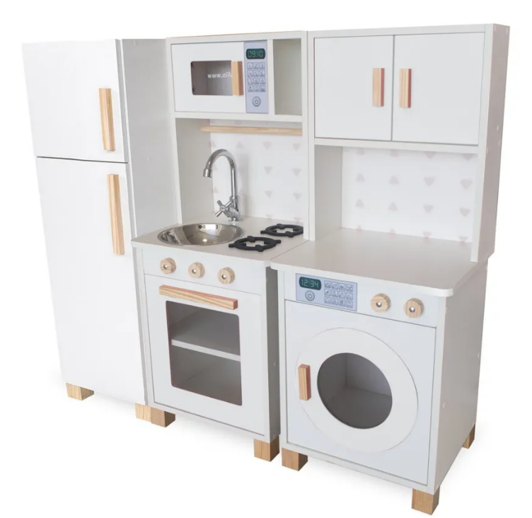 Mais do que um brinquedo, esta mini cozinha em MDF com lavanderia é um recurso lúdico que estimula: