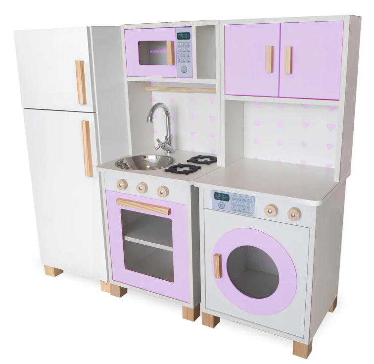 Transforme o momento de brincar em aprendizado com a Cozinha Infantil com Geladeira e Mini Lavanderia Lilás da Mundo de Imaginação. Produzida em MDF de alta qualidade e acabamento premium, esta cozinha de brinquedo combina durabilidade, design moderno e detalhes realistas para encantar crianças e pais.